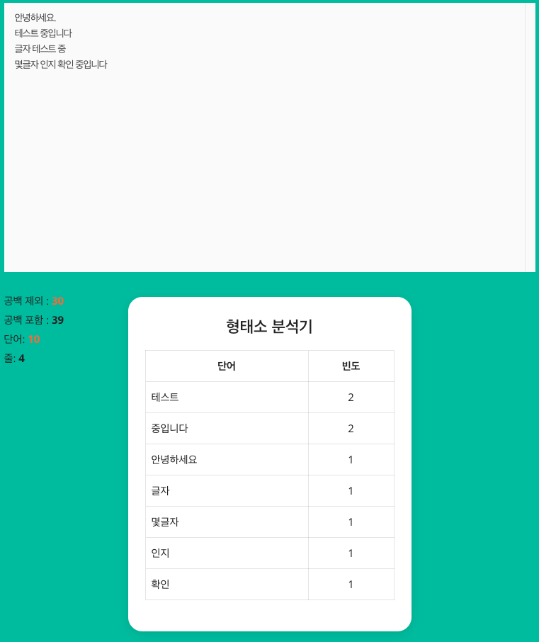 글자수세기 + 형태소 분석기