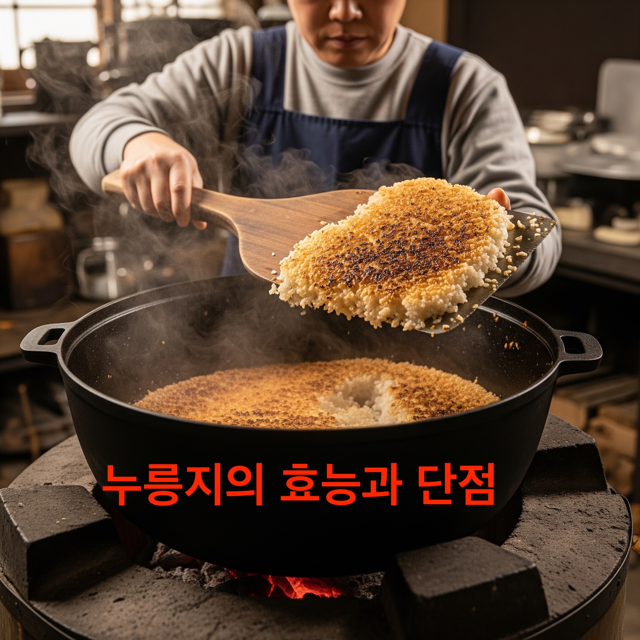- 누릉지가 과도하게 눌리거나 탄 부분에는 벤조피렌 같은 발암물질이 생길 수 있음.