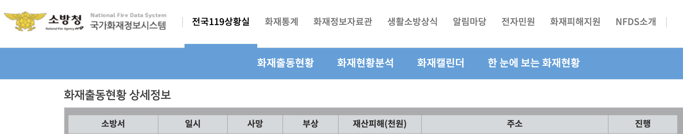 소방청 국가화재정보시스템 : https://www.nfds.go.kr/dashboard/monitor.do