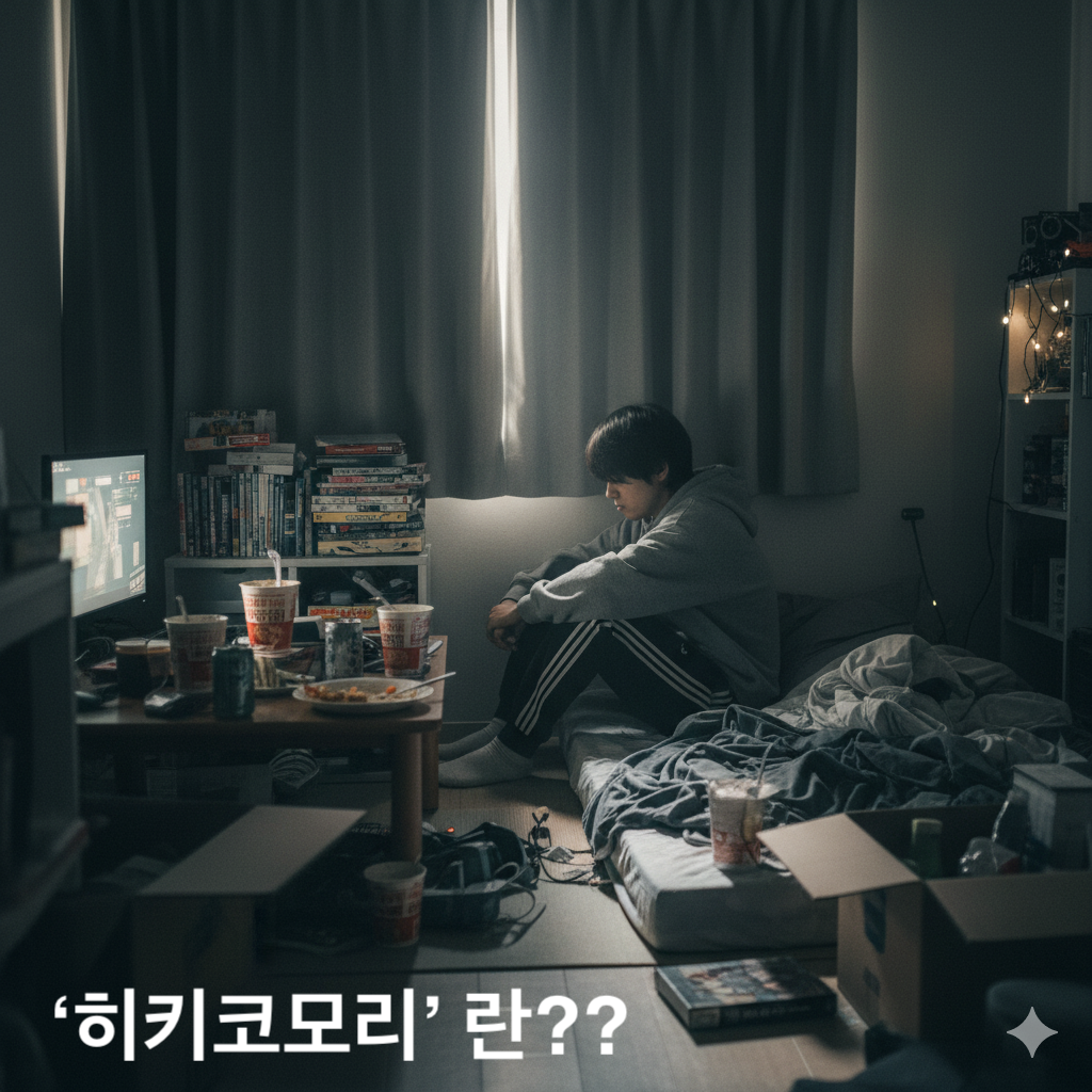 - 히키코모리(Hikikomori)는 장기간(일반적으로 6개월 이상) 거의 집 밖으로 나오지 않고 사회적·직업적 활동(학교·직장 등)을 중단한 상태를 말합니다.