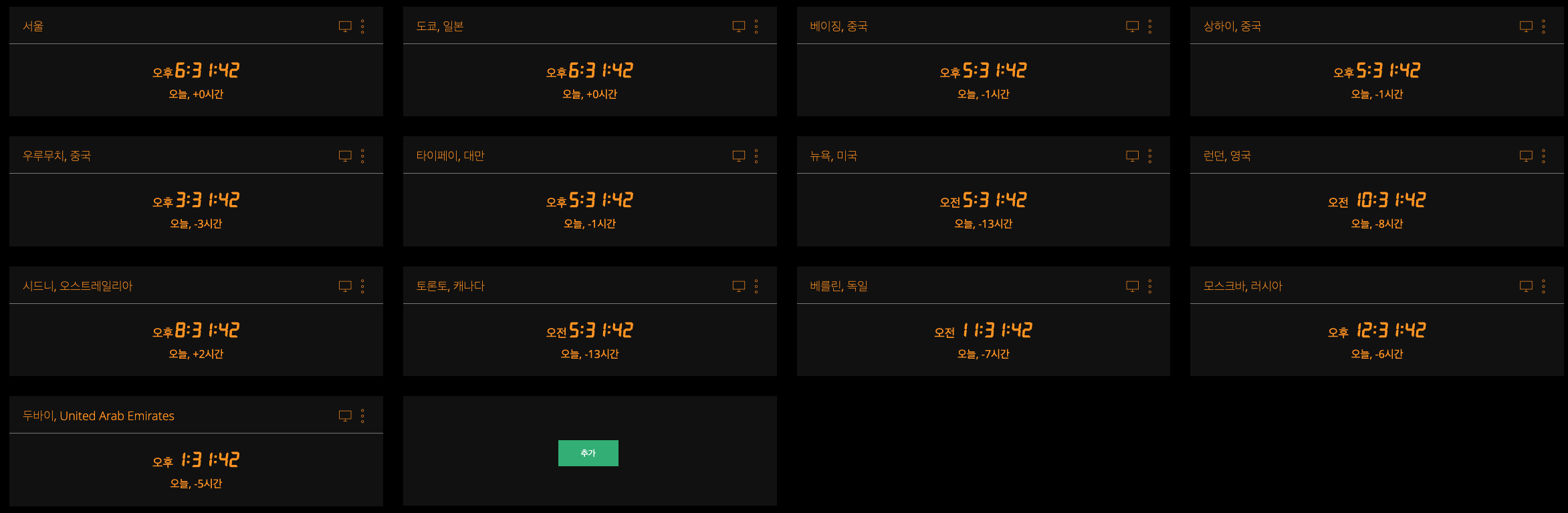 게다가 내가 원하는 세계시간을 추가해서 확인도 가능하니 편하게 이용할 수 있을거 같더라구요! ㅎㅎ