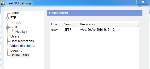 실행해보면, 서버쪽의 Online users 에서 접속했던 사용자 gipsy가 사라지는 것을 볼 수 있다.