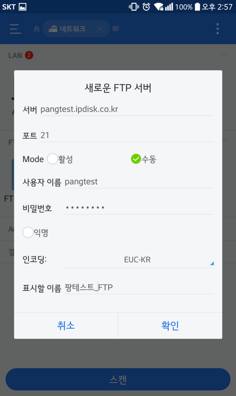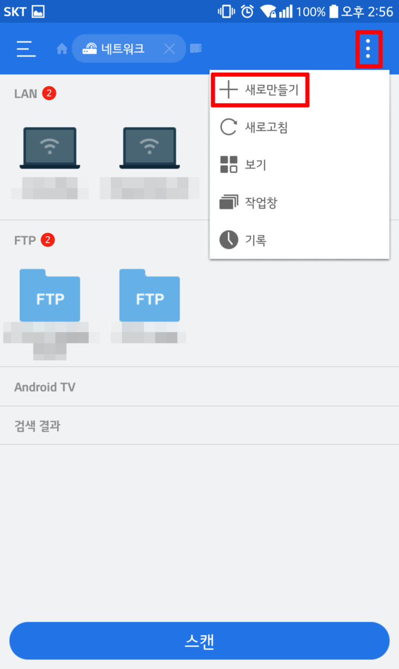 ES파일탐색기에서 네트워크를 선택하고 위와 같이 설정합니다.