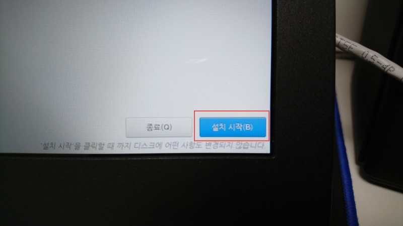 설치를 위한 옵션 설정을 모두 완료하였습니다. 이제 본격적으로 설치를 시작하기 위해 화면 맨 우측 하단의 [설치 시작(B)] 버튼을 누릅니다.