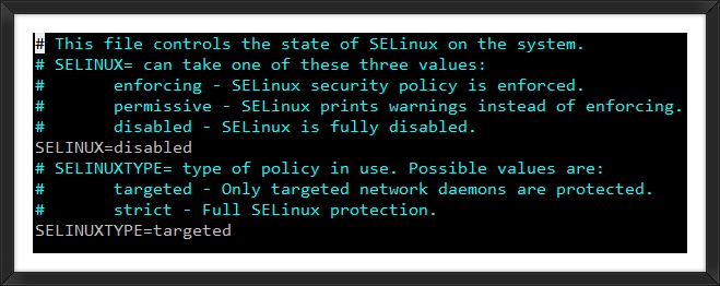 SELINUX=enforcing 을 disabled로 변경하여 준다.