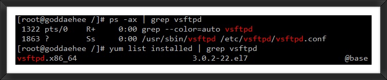 # ps -ax | grep vsftpd # yum list installed | grep vsftpd