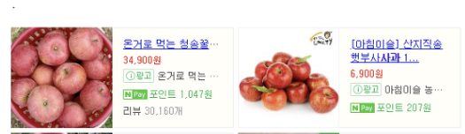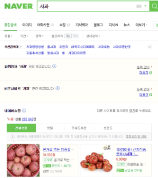 간단하게 과일에 대한 네이버 검색 결과를 크롤링하려면 아래의 결과에 대한 URL을 선정하는 과정