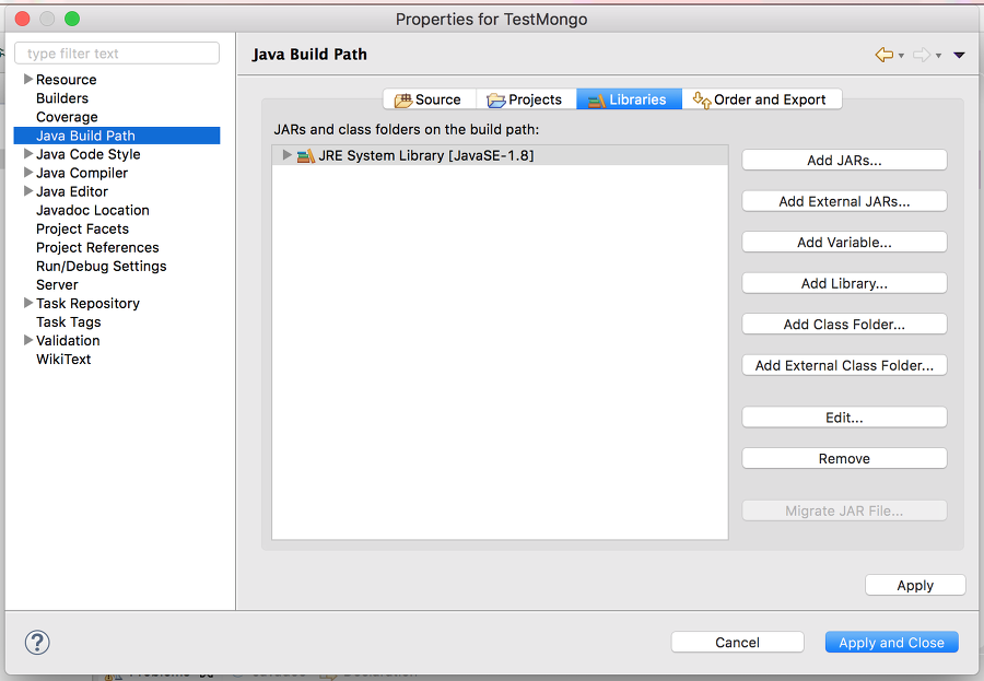 Java Build Path->Libraries->Add External JARs를 선택해준다.