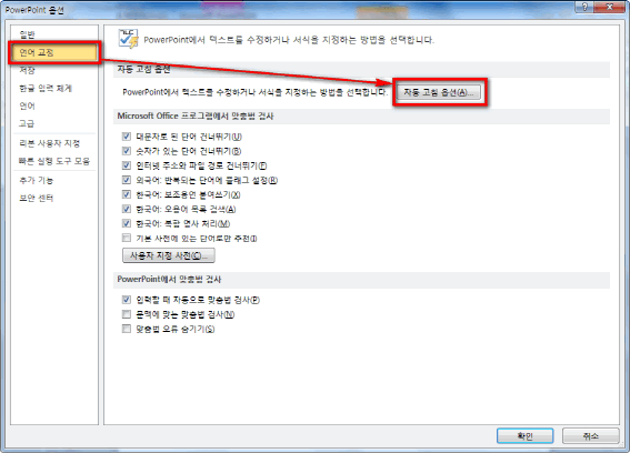 [컴퓨터] powerpoint 2010 한영 자동고침 설정 본문