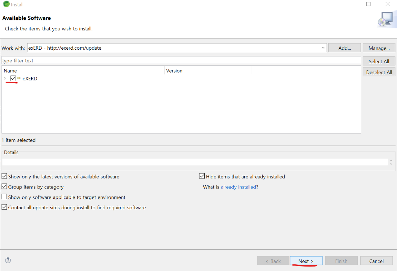 exERD에 체크하고 Next를 눌러 넘어갑니다.