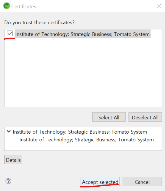 위와 같이 체크하고 Accept selected를 클릭합니다.