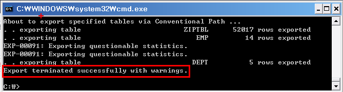 c:\> exp 계정명/계정 암호 file="c:\scotttbl.dmp" tables=(ziptbl, emp, dept)