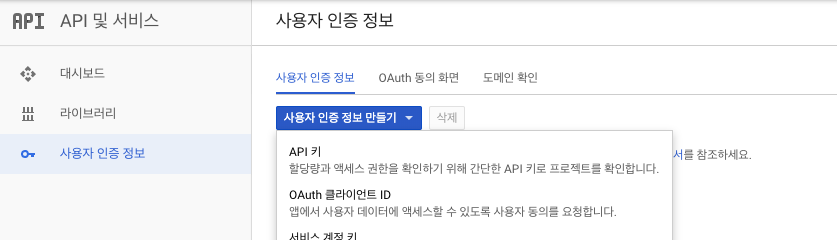 1.Google Console에서 API키 얻기