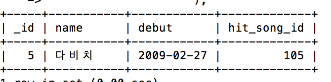 | VALUES ('다비치', '2009-02-27', 105); |