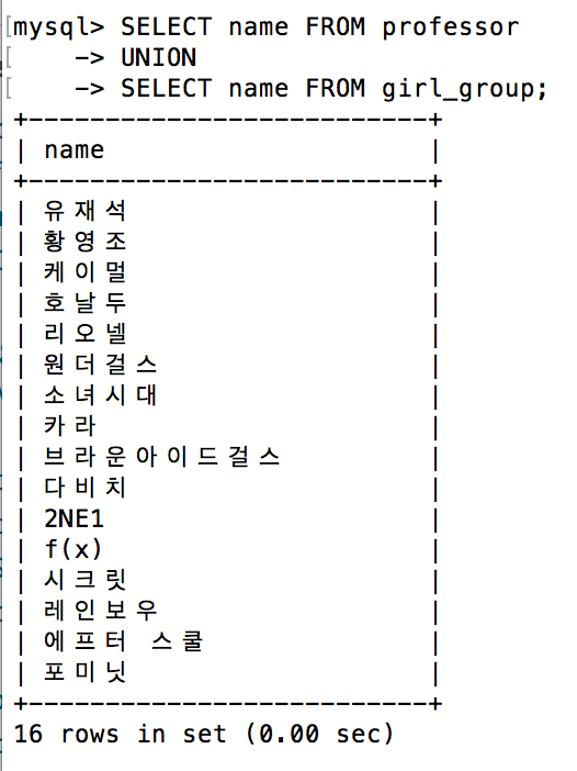 - 유니온을 한 결과가 중복되면 하나만 나온다. (DEFAULT)