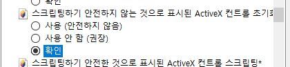 그 후 스크립팅하기 안전하지 않은 것으로 표시된 ActiveX 컨트롤 초기화를 '확인'으로 선택하시면 됩니다.