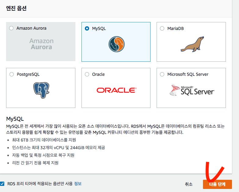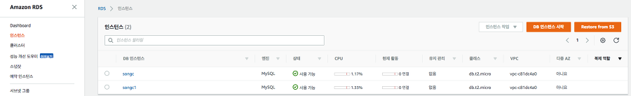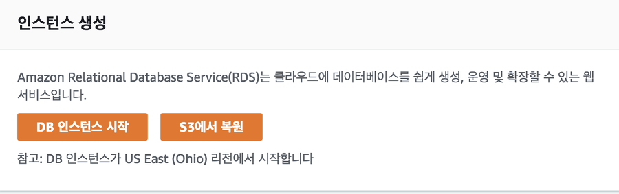 Aws RDS ->->Dashboard 하단에 인스턴스 생성