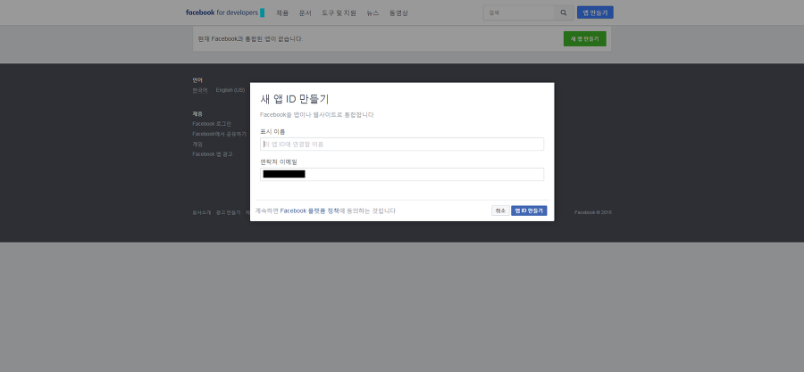 개발자 페이지 (https://developers.facebook.com/apps) 에 접속해보니,