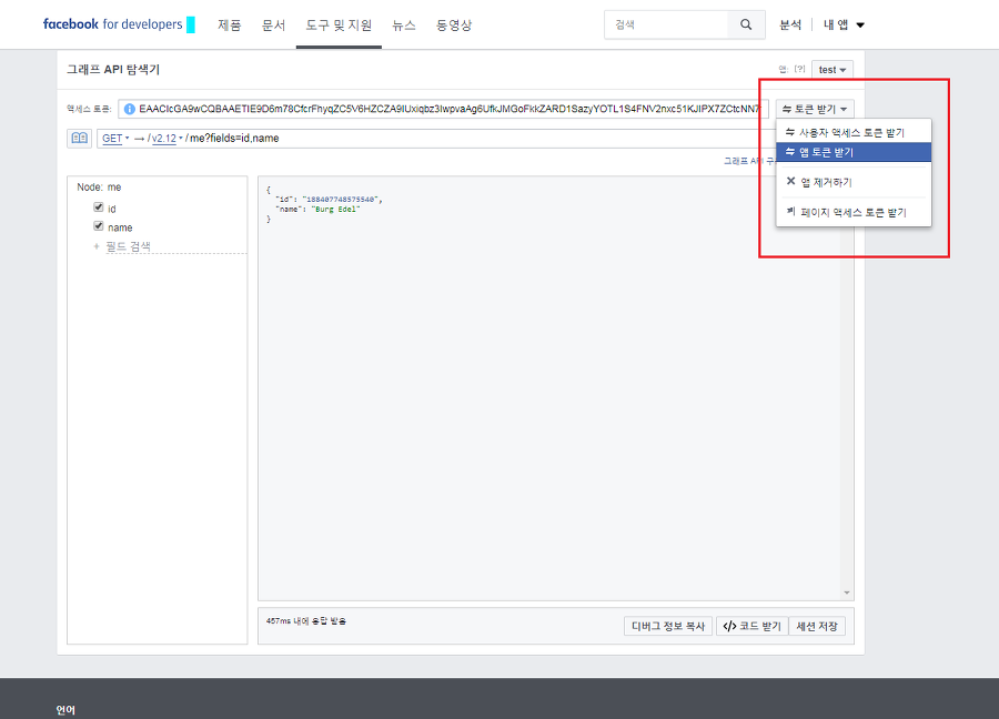 10. 스크린 샷과 같이 앱 액세스 토큰이 발급되었다면