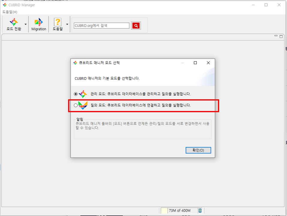 - Toad나 Sql Development 같은 걸 상상했다면 질의모드를 선택하도록 하자.