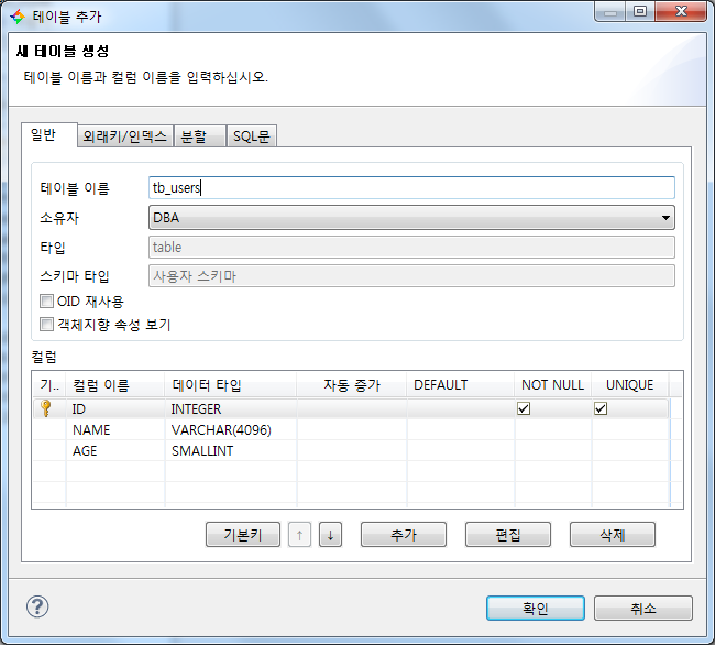 [CUBRID] 매니저를 사용하여 테이블 생성 [펌]