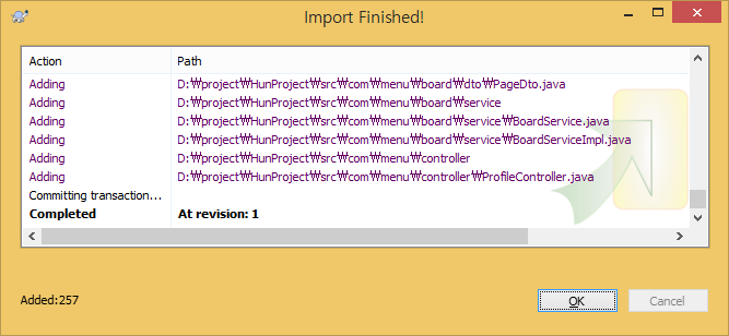 여기서는 기존 프로젝트를 SVN이 사용 가능하도록