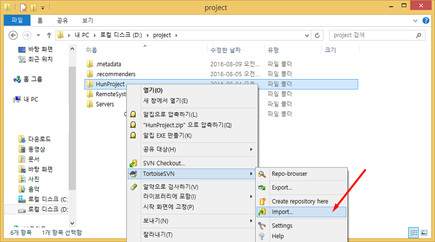 TortoiseSVN → Import 를 클릭해줍니다.