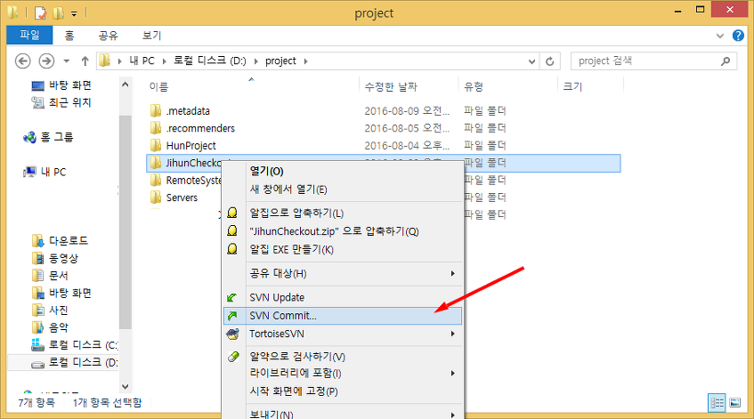 SVN Commit을 클릭했습니다.