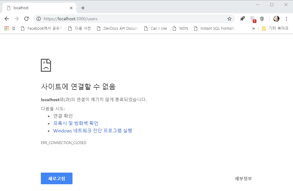 https://localhost로 연결되어 페이지를 표시하지 못하는 경우