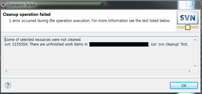 - SVN 사용시 가끔 lock이 걸리거나 위 그림과 같이 꼬이는 경우가 발생한다.