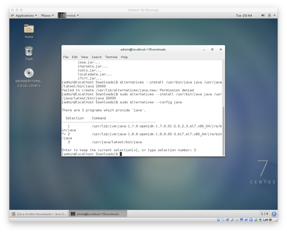 두번째 줄을 입력한 후 어떤 'java"를 제공하냐고 물으면 /usr/java/latest/bin/java를 선택한다. (보기 번호 중 3번 입력후 엔터)