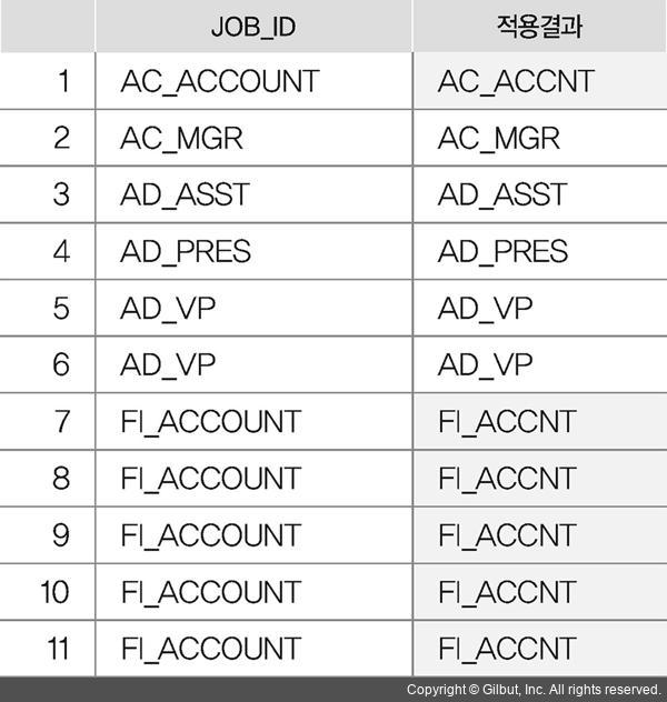 SELECT job_id, REPLACE(job_id, 'ACCOUNT', 'ACCNT') 적용결과