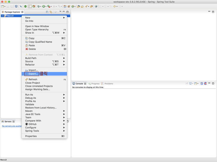 내보내기 할려는 프로젝트 마우스 오른쪽 클릭 후 Export... 클릭