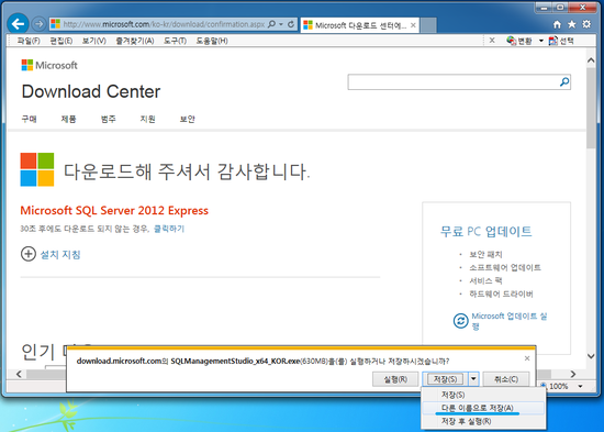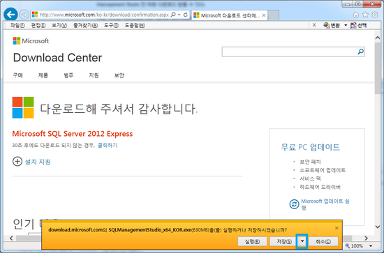 아래 주소는 Microsoft SQL Server 2012 Express 를 다운로드 받을 수 있는 곳이다.