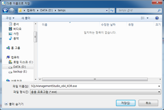 7. 위 화면에서 저장할 장소를 찾아서 화면 오른쪽 아래에 있는 "저장" 버튼을 클릭하면 다음과 같은 화면이 나온다.