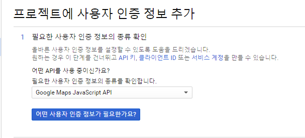 어떤 API를 사용중이신가요?는 방금 만든 구글맵스로 설정합니다.