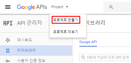 우측상단의 'Project'에서 '프로젝트 만들기'를 클릭합니다.