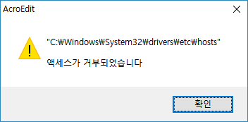 Windows 10에서 hosts 파일의 내용을 수정하고 저장하려고 하면 "액세스가 거부 되었습니다." 라고 뜨고 수정이 되지 않습니다.