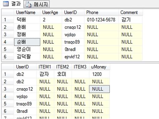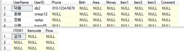 결과는 똑같이 나오지만 UserID는 이제 NULL값을 허용하지 않습니다 ㅎㅎ