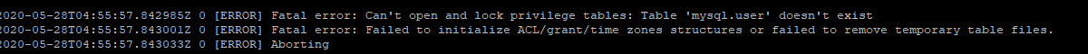 Failed to initialize ACL/grant/time zones structures or failed to remove temporary table files.
