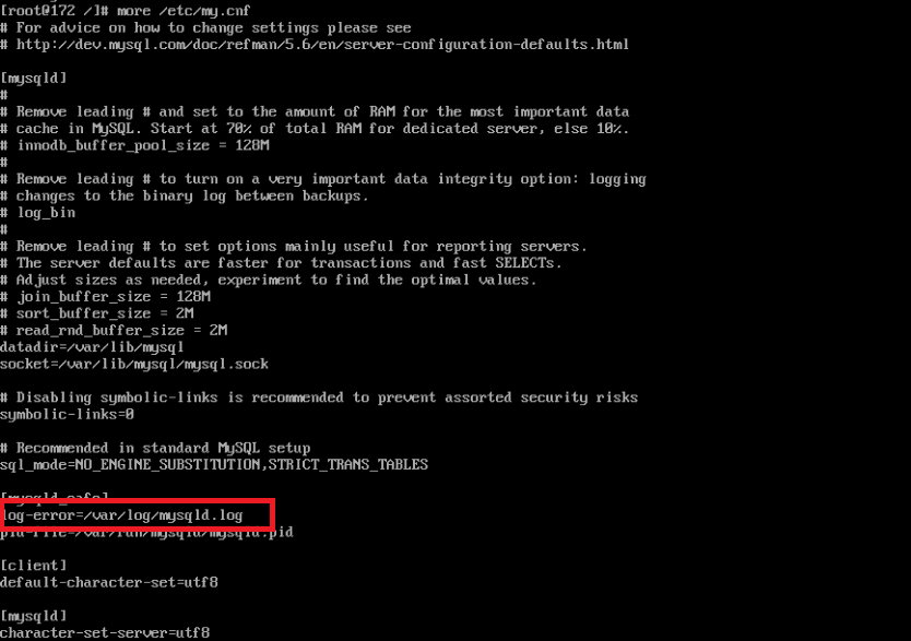 more /etc/my.cnf 명령어로 내용을 확인하겠습니다.