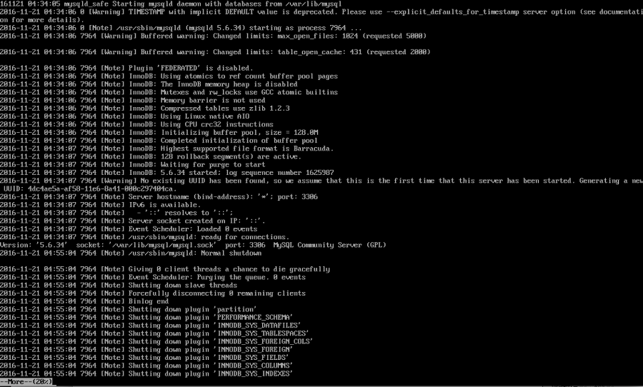 more /var/log/mysqld.log 를 입력하여 log 내용을 보겠습니다.