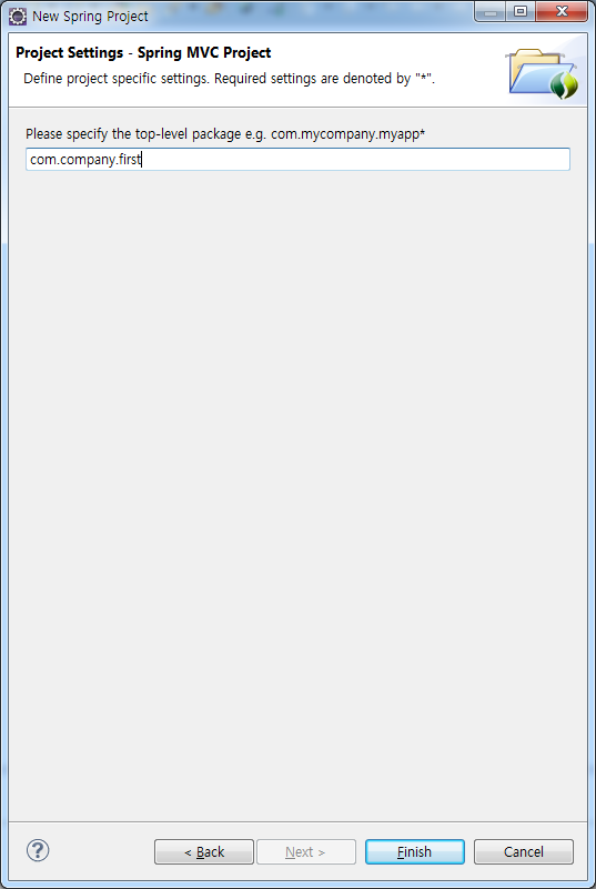 여기서는 최초의 스프링 프로젝트이니, 프로젝트의 이름을 first 로 지정하였다.