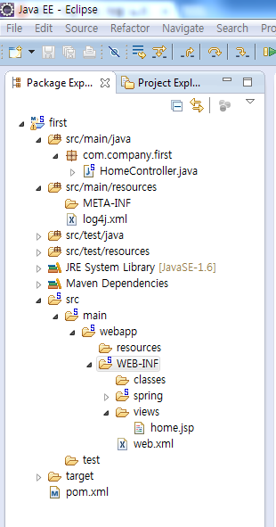 본인은 Package Explorer에서 개발을 하는데, 사람에 따라서는 Project Explorer가 더 편하다고 이야기 하는 사람도 많다. 자신이 개발하면서 편한 View를 보며 진행하면 된다. 이 글에서는 앞으로 계속 Package Explorer에서 보이는 것을 기준으로 설명한다.