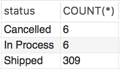 SELECT status, COUNT(*) FROM orders GROUP BY status;