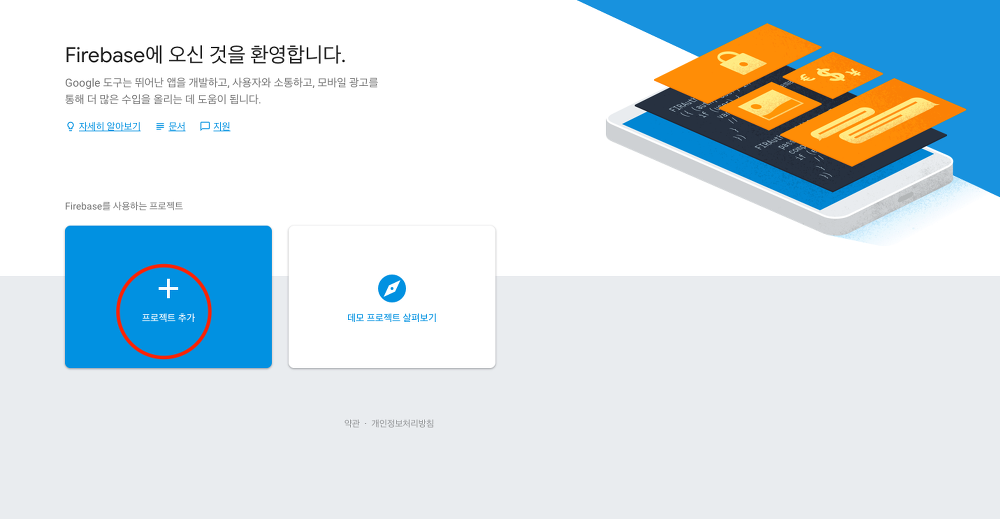 FCM관련 콘솔 홈페이지로 접속합니다(링크)
