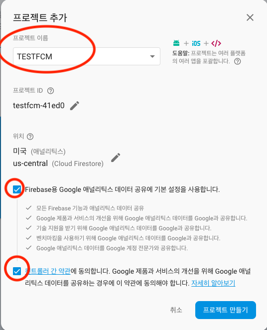 FCM프로젝트를 생성 및 푸시 테스트까지 진행해 보도록 하겠습니다.