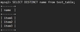 위 예에서, name 컬럼 값이 item1인 데이터가 2개 있지만, GROUP BY 명령어 실행 후, 1개 밖에 없습니다.