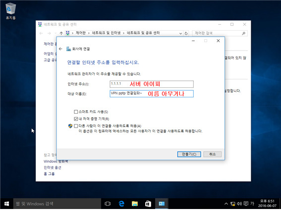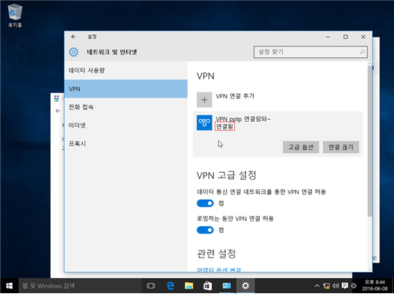 그럼 이제 마지막으로 window 클라이언트에서 VPN 에 접속해보겠습니다.