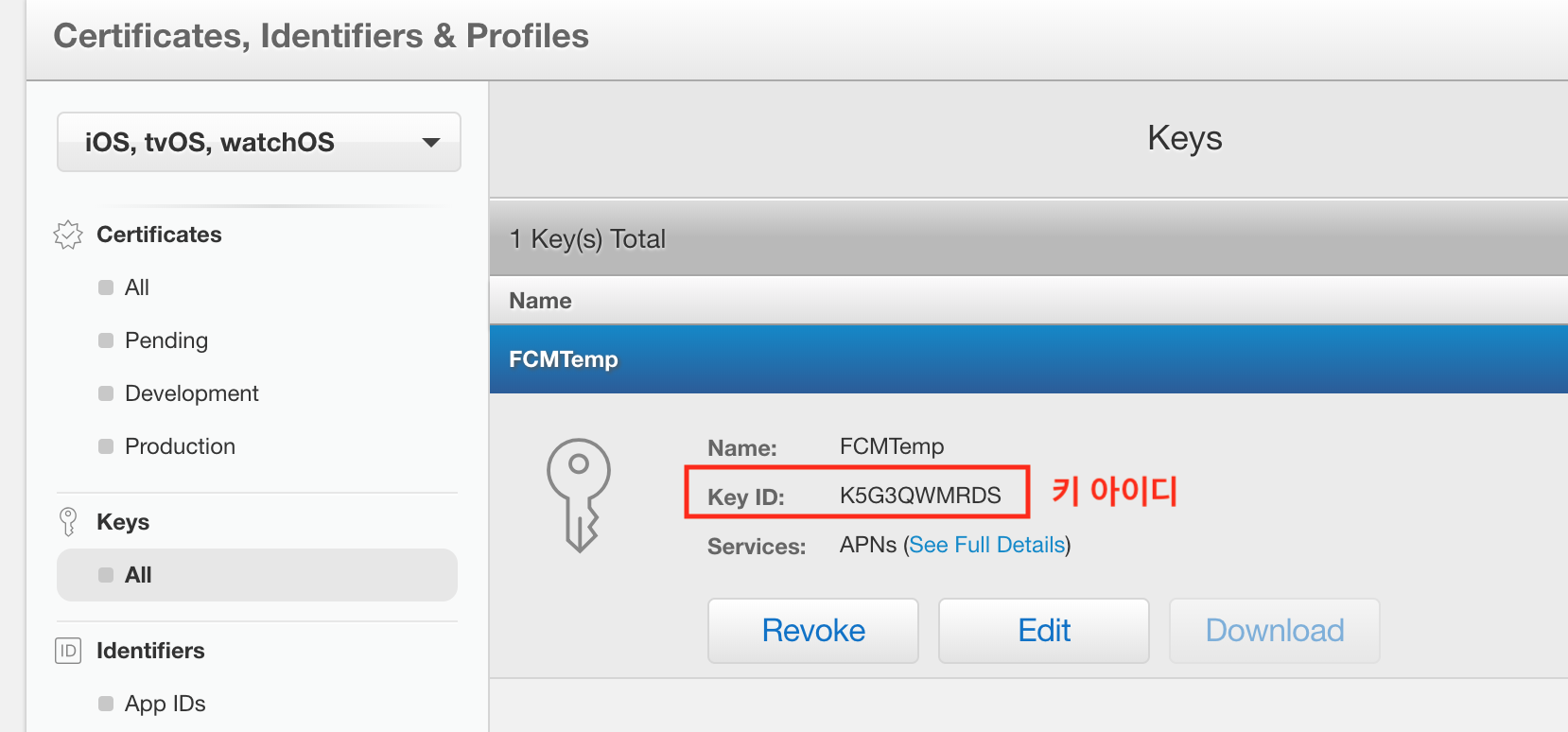 - Identifiers(식별자) > App IDs(앱 ID)로 이동합니다.